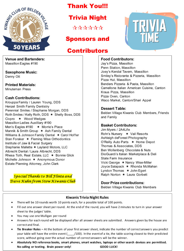 Joint meeting of the Belden Village Kiwanis and Jackson HS Key Club.